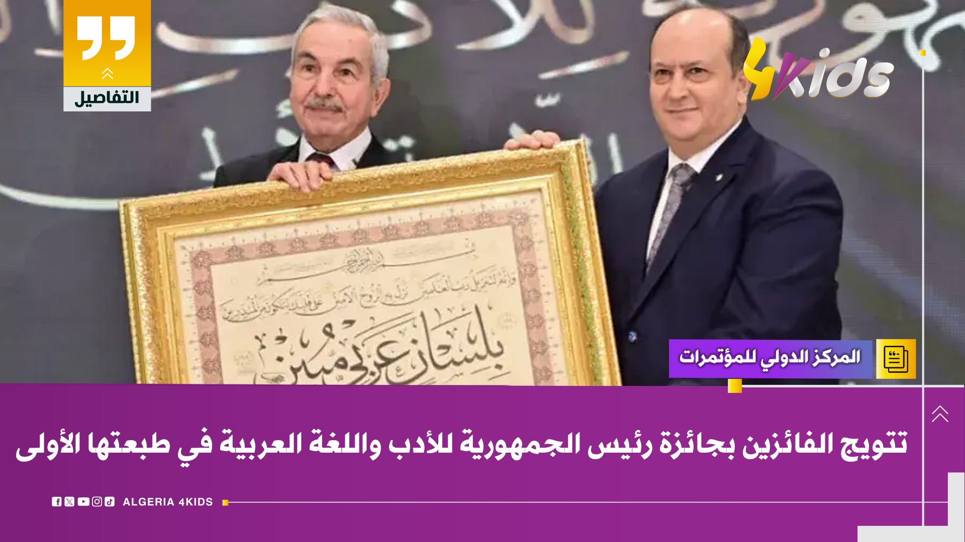 وعادت المرتبة الأولى لجائزة رئيس الجمهورية للأدب واللغة العربية, في مجال “ازدهار اللغة العربية”, للباحث صديق بوتيوتة عن عمله “مسرد ومصطلحات وتعريفات الأقمار الصناعية”, فيما تحصل على المرتبة الثانية, الأستاذ لخضر فار, لإنجازه معجم خاص بقطاع البناء والاشغال العمومية والري, فيما كانت المرتبة الثالثة من نصيب علي كشرود, عن مؤلفه “دليل في أحكام الرسم الإملائي”.