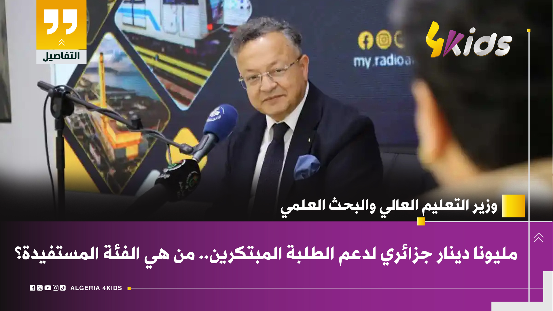 اقرأ المزيدأعلن وزير التعليم العالي والبحث العلمي، كمال بداري، أن الطلبة أصحاب النماذج النهائية للمشاريع الابتكارية سيستفيدون من دعم مالي يتراوح بين 1 و2 مليون دينار جزائري. تعزيز القيمة المضافة أكد وزير التعليم العالي في وقت سابق، أن التوجه الجديد للقطاع يرتكز على تعزيز القيمة المضافة للبحث العلمي في الجزائر وربطه باحتياجات المواطن والاقتصاد. وشدد الوزير...