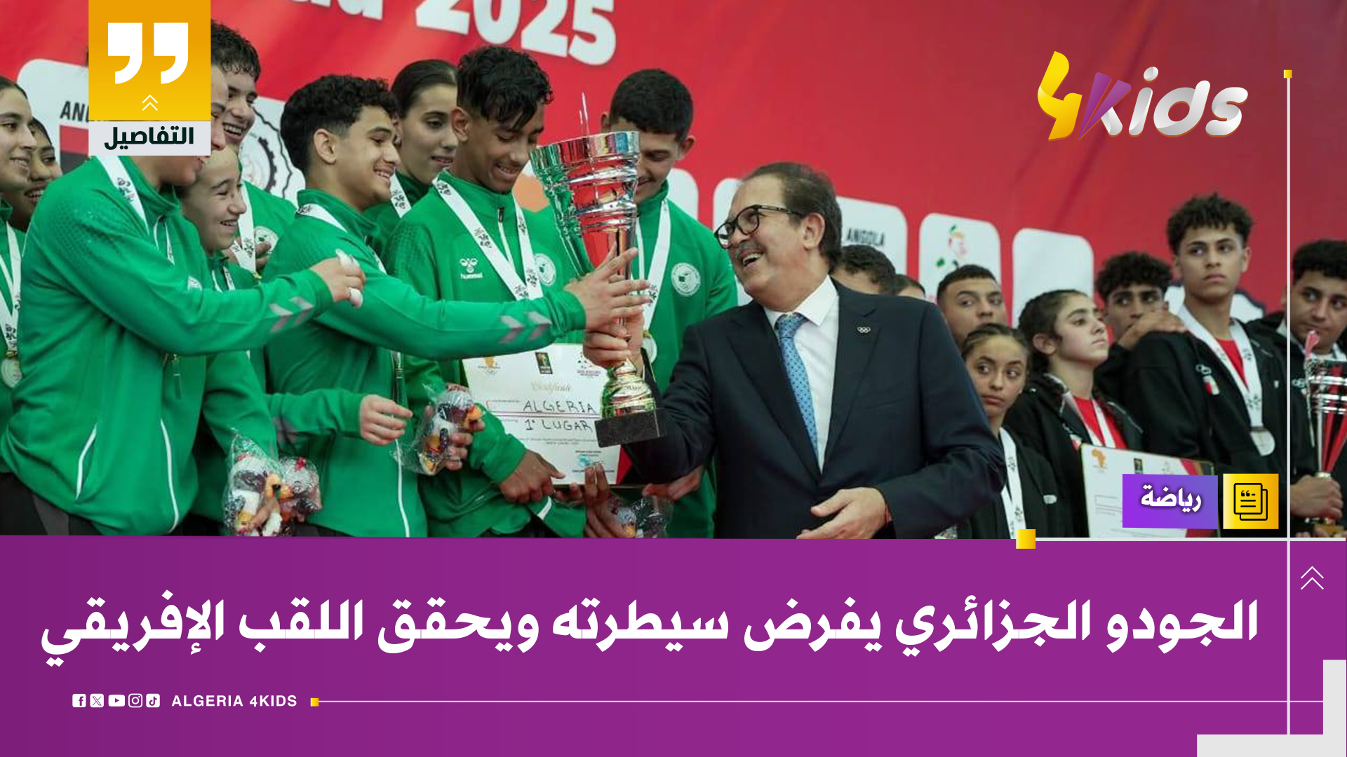 اقرأ المزيدأكدت الرياضة الجزائرية علو كعبها مجدداً في المحافل الدولية، حيث تُوّج المنتخب الوطني للجودو بلقب البطولة الإفريقية، ضمن فعاليات النسخة الحالية للألعاب الإفريقية للشباب المقامة بأنغولا. وجاء هذا التتويج المستحق بعد سيطرة مطلقة لـ “الخضر” في منافسات “حسب الفرق”، مما مكنهم من الظفر بالميدالية الذهبية وكأس البطولة. وفي أجواء احتفالية سادتها الفرحة الوطنية، تسلّم أبطال...