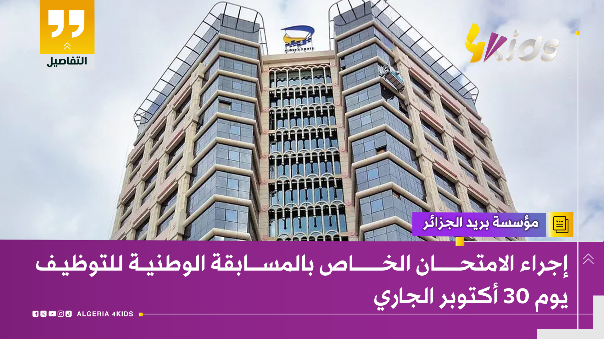 اقرأ المزيدأعلنت مؤسسة “بريد الجزائر” في بيان لها, أن الامتحان الخاص بالمسابقة الوطنية للتوظيف سيجري بتاريخ 30 أكتوبر الجاري, عبر المنصة الرقمية المخصصة للتوظيف. وأوضح المصدر ذاته أنه و”لتمكين المترشحين المعنيين بالمسابقة الوطنية للتوظيف من الولوج إلى المنصة الرقمية في الوقت المحدد وبكل أريحية, سيتم في الفترة ما بين 20 و24 أكتوبر , إرسال الرسائل النصية...