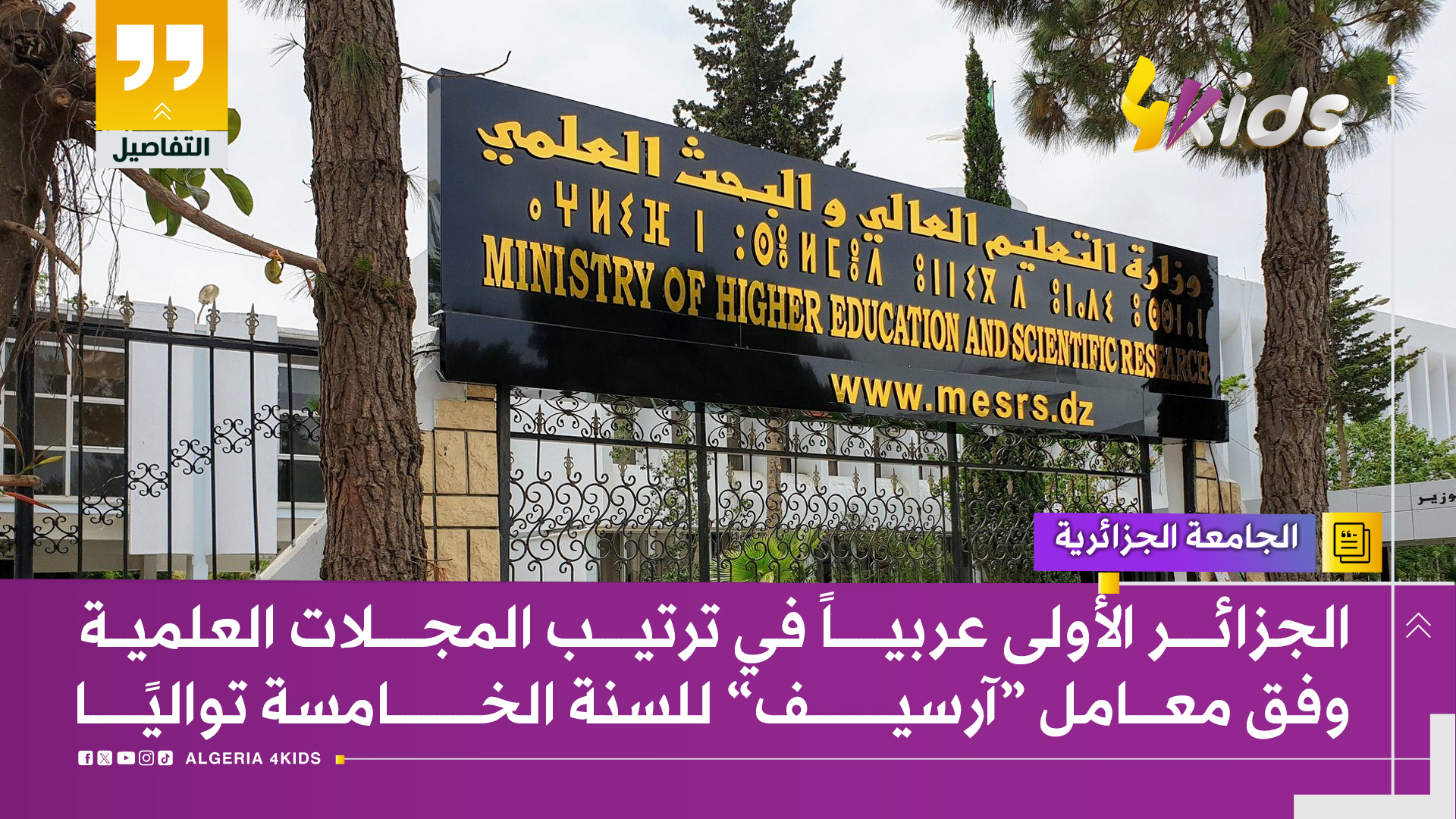 اقرأ المزيدحافظت الجزائر على المرتبة الأولى عربيًا في تصنيف معامل التأثير والاستشهادات المرجعية العربي “آرسيف” ARCIF لسنة 2025. في إنجازٍ جديدٍ يعكس المكانة البحثية المتقدمة للمؤسسات الجامعية الجزائرية، وذلك للسنة الخامسة على التوالي، بعدما نجحت 426 مجلة علمية جزائرية في تلبية معايير التصنيف، من بين أكثر من 5000 عنوان مجلة عربية تم تقييمها. وأبرزت وزارة التعليم...