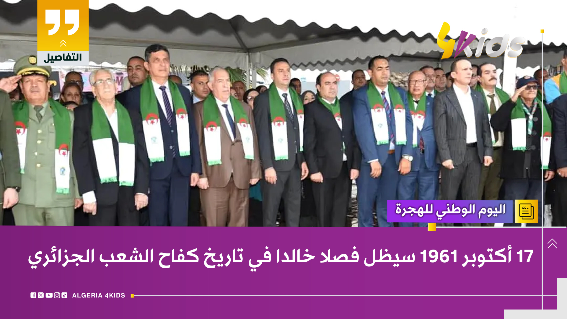 اقرأ المزيدأكد وزير المجاهدين وذوي الحقوق، عبد المالك تاشريفت، أن 17 أكتوبر 1961 سيظل فصلا خالدا في تاريخ كفاح الشعب الجزائري ضد الاستعمار الفرنسي ورسالة حضارية تتوارثها الأجيال داخل الوطن وخارجه. وفي تصريح ل”وأج” عشية إحياء اليوم الوطني للهجرة، المخلد لمجازر 17 أكتوبر1961, أوضح وزير المجاهدين أن هذا التاريخ سيبقى “فصلا خالدا في تاريخ الجزائر المجيد...