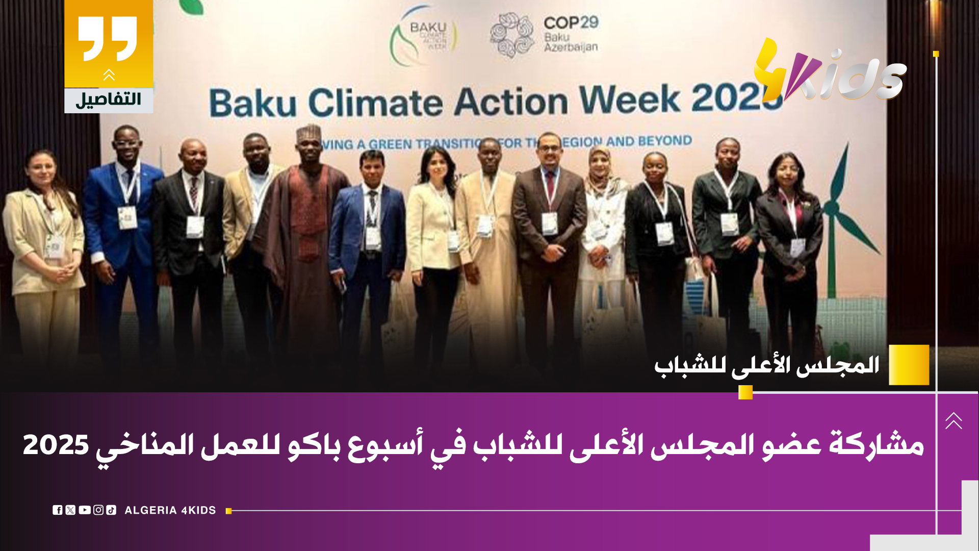 اقرأ المزيدتشارك عضو المجلس الأعلى للشباب الشريفة عبد الجبار وعضو مكتب منظمة شباب حركة عدم الانحياز (NAMYO) في فعاليات أسبوع باكو للعمل المناخي المقام في الفترة من 29 سبتمبر الى 03 أكتوبر 2025 في أذربيجان، الذي يجمع القادة الشباب والخبراء وصناع القرار لمناقشة التحديات المناخية وبناء حلول عملية لمستقبل أكثر استدامة. يهدف البرنامج إلى تعزيز دور...