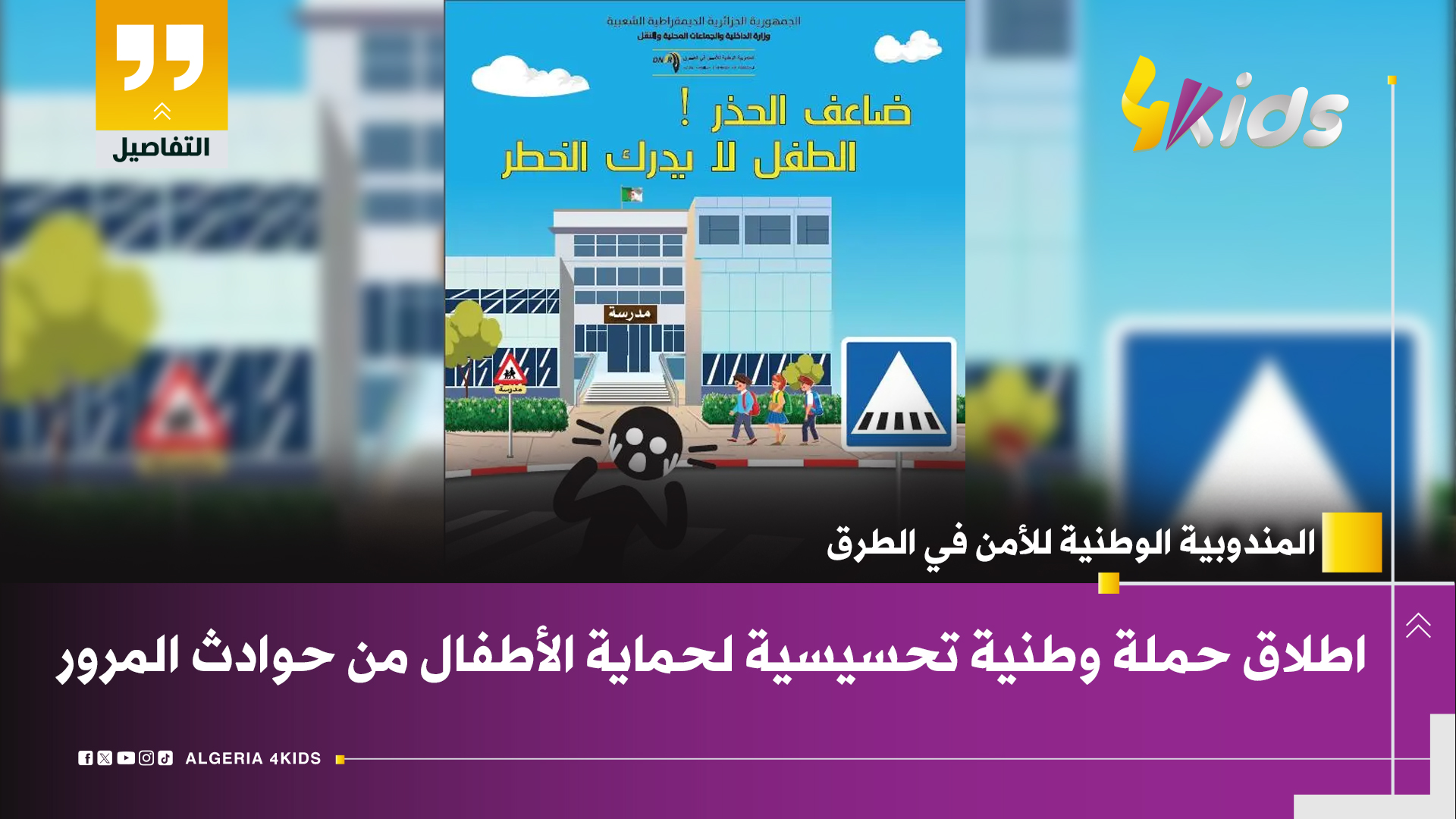 الجزائر – أطلقت المندوبية الوطنية للأمن عبر الطرق، يوم الثلاثاء بالجزائر العاصمة، حملة تحسيسية وطنية لحماية الأطفال من حوادث المرور، تحت شعار “ضاعف الحذر.. الطفل لا يدرك الخطر”، وذلك تزامنا مع بداية الموسم الدراسي 2025-2026. و قد تم إعطاء إشارة انطلاق هذه الحملة التوعوية –التي تنظم بالتعاون مع مختلف الشركاء والفاعلين في الميدان–، على مستوى...