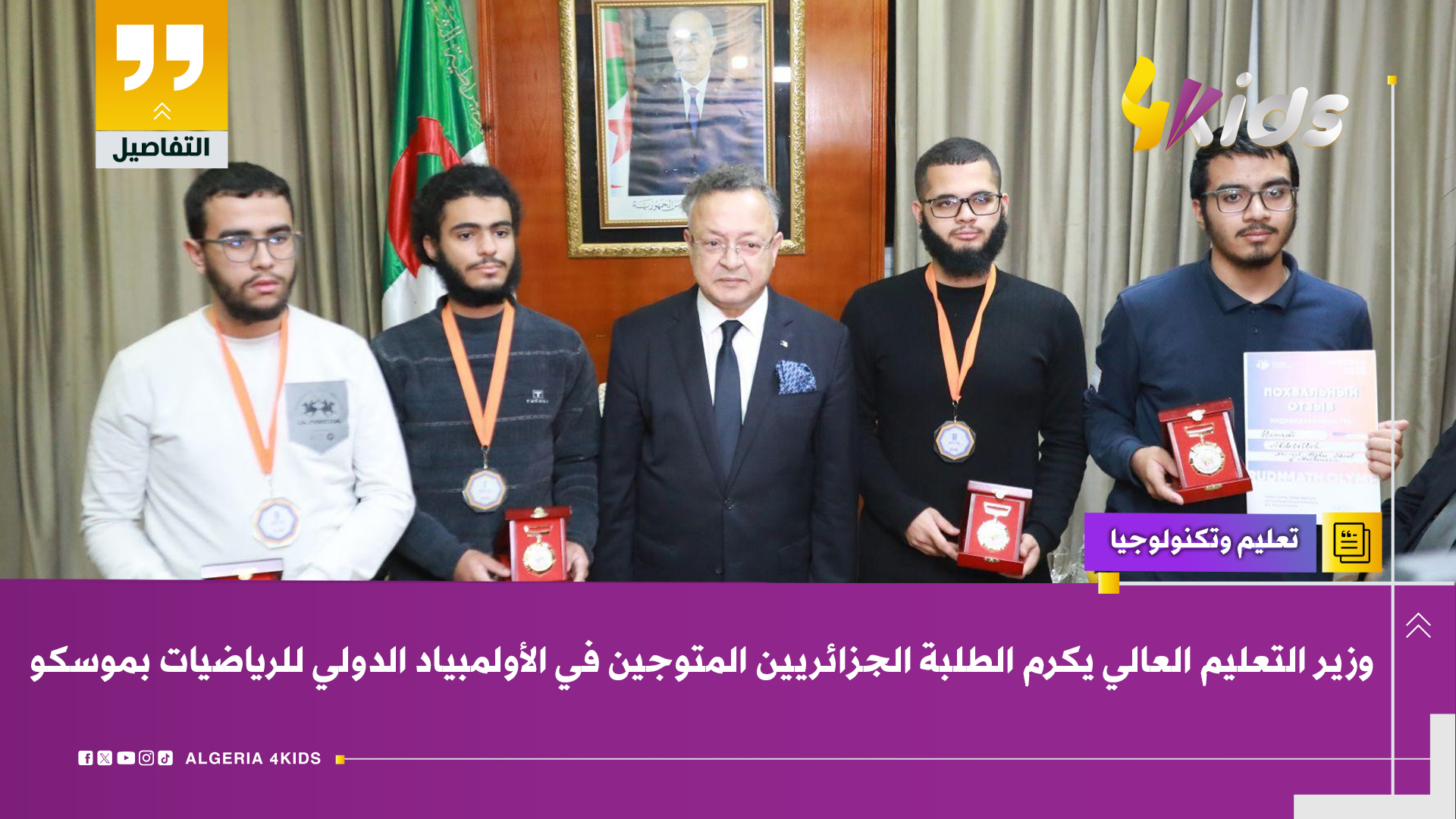 اقرأ المزيدأسدى وزير التعليم العالي والبحث العلمي, كمال بداري, أمس الإثنين بمقر الوزارة, أوسمة استحقاق الوزارة للطلبة الجزائريين المتوجين في الأولمبياد الدولي للرياضيات بالعاصمة الروسية موسكو. ويتعلق الأمر بفريق طلبة المدرسة الوطنية العليا في الرياضيات, القطب العلمي التكنولوجي سيدي عبد الله (الجزائر العاصمة), بن ملوكة محمد أمير, أيت حمدوش هيثم, بوفدجيغن عبد النصير, وحمادي عبدالإله, بالإضافة...