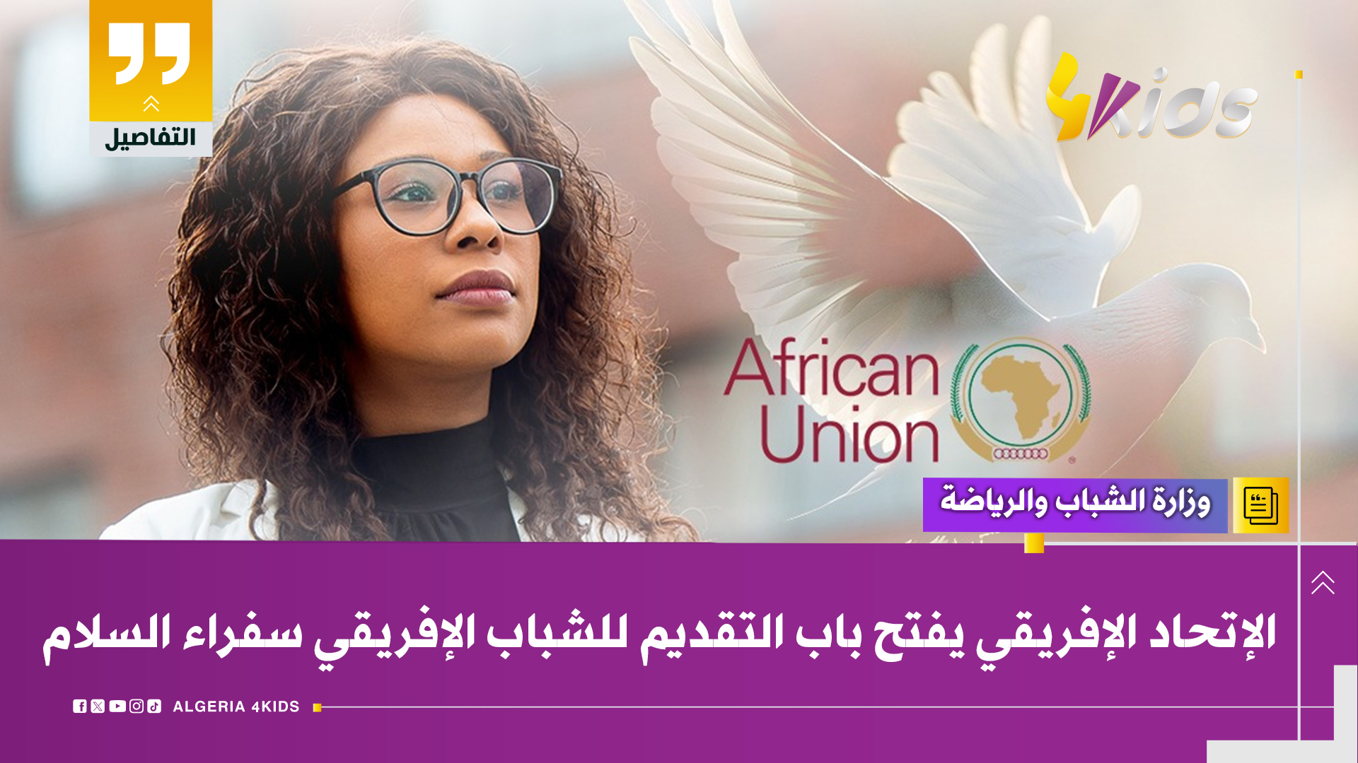 اقرأ المزيدحرصاً منها على تعزيز حضور الشباب الجزائري وتمكينهم سياسيا على المستويين القاري والدولي، تعرض عليكم وزارة الشباب، فرصة قارية يطلقها الاتحاد الإفريقي لفائدة الشباب، تتمثل في برنامج سفراء الشباب الأفارقة من أجل السلام (AYAP). يهدف هذا البرنامج إلى تمكين الشباب من المساهمة في قضايا السلم والأمن، من خلال تعيين سفراء إقليميين يعملون على تعزيز مشاركة...