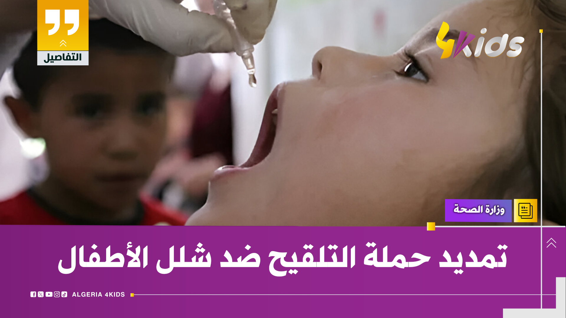 اقرأ المزيدأعلنت وزارة الصحة، اليوم الخميس، عن تمديد حملة التلقيح ضد شلل الأطفال إلى 8 ديسمبر. وأشارت وزارة الصحة، إلى أن تمديد حملة التلقيح جاء بغرض تمكين أكبر عدد ممكن من الأطفال بتلقي اللقاح. كما جاء التمديد بعد نجاح الحملة و الإقبال الكبير الذي شهدته مراكز العلاج.